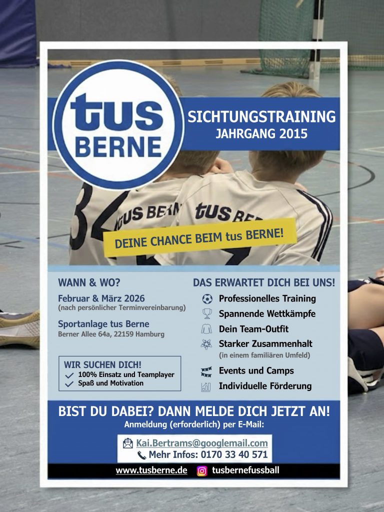 tus BERNE Fußballschule Sommer 2026 für Jg. 2014-2018: Anmeldung ab sofort möglich!